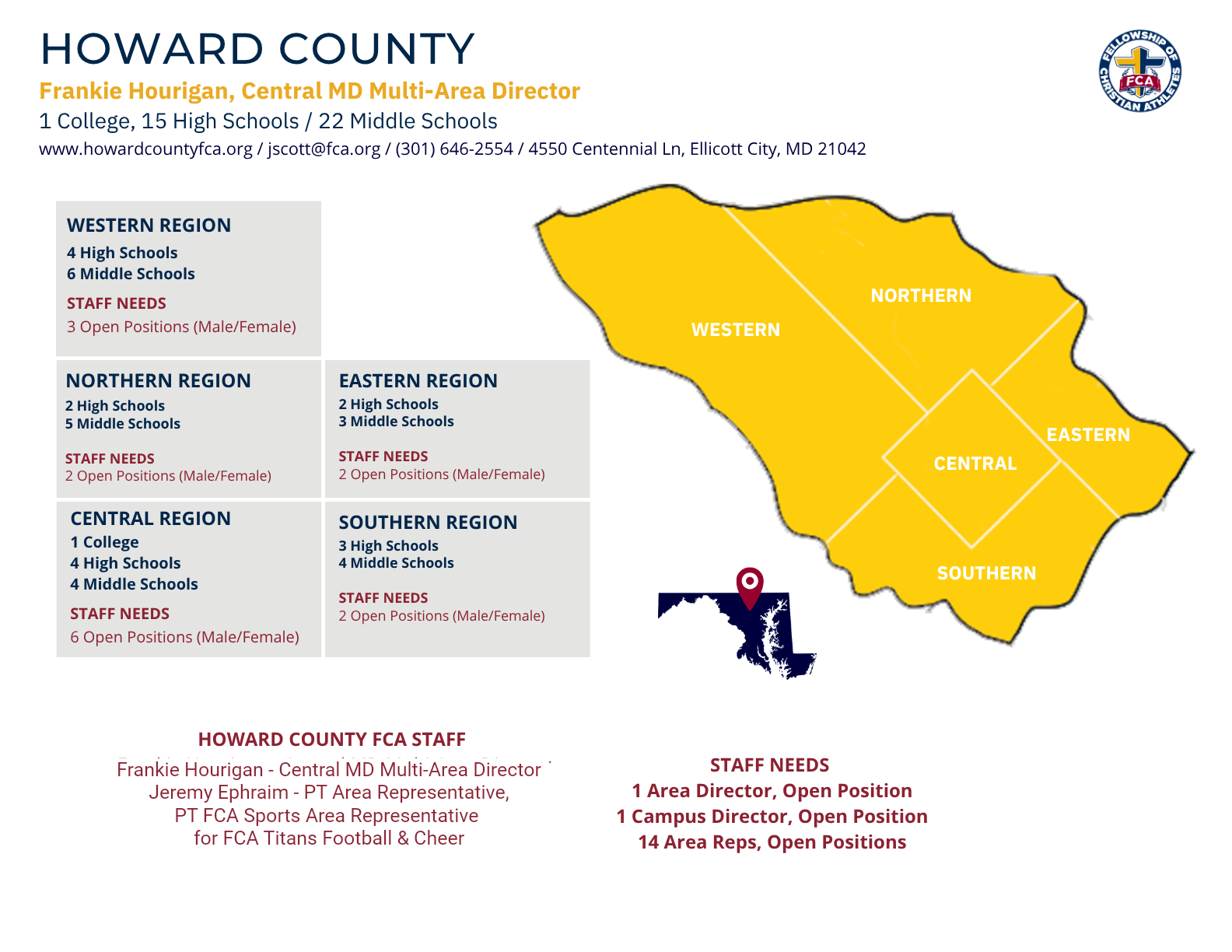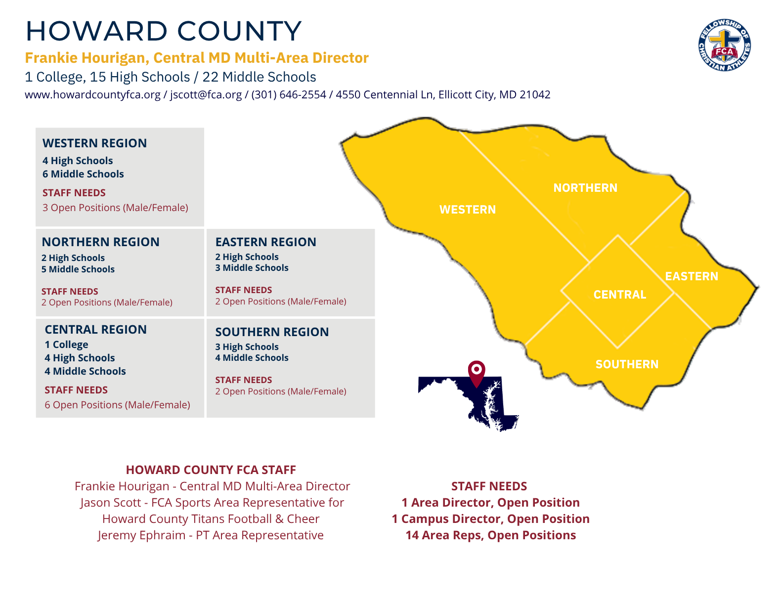 Howard County FCA is currently looking to hire an Area Director to lead the ministry in the county.
